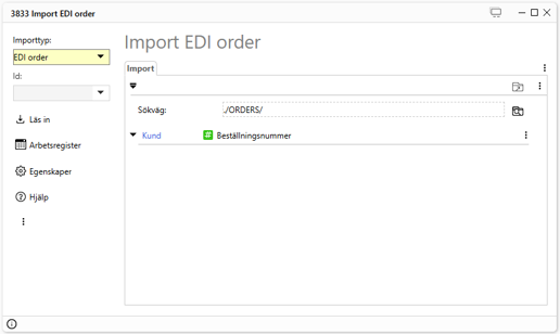 Modulen EDI Bas baseras på modulen Import Order. Den största skillnaden är att identifieringen av företag och vanligtvis artiklar sker med GLN-/GTIN-koder istället för Pyramids företags- och artikelkoder.