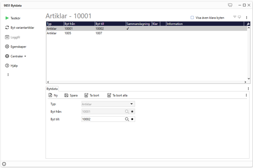 Bytkod är modulen som ger dig möjlighet att byta artikel- och företagskoder i systemet. Byten kan göras manuellt eller läsas in från textfil.
