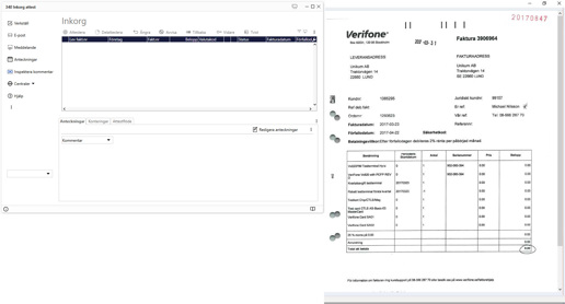 Fakturorna registreras genom att användaren granskar fakturabilderna i Pyramids inkorg. När en faktura sparas kopplas den inskannade filen ihop med reskontraposten. Här anger användaren även vilket attestflöde som passar för respektive faktura. Fakturor kan också importeras tillsammans med inskannad faktura och attestmall via tillvalsmodulen Importrutiner för en snabbare ankomstregistrering.