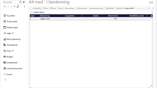 Har ditt företag filialer på olika orter är Pyramid Flerlager den modul som hjälper dig att hålla reda på dina lagersaldon. I sökdialoger för artiklar visas i första hand totalsaldot, men det går också utmärkt att se vilka lagersaldo, reserveringar och inköp som finns på varje lager för sig.