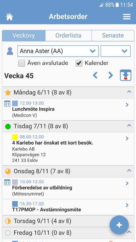 Med mobil arbetsorder får du översikt över bokningsläget. Du ser arbetsgruppens kalendrar och kan enkelt boka in rätt person för rätt uppdrag.