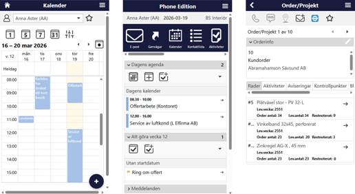 Med arbetsorder och tidrapportering görs tidsskrivning och avrapportering oerhört enkelt direkt mot affärssystemet. Med kameran i mobilen kan dokumentation direkt kopplas till projekt och uppdrag.